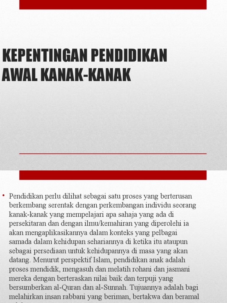 Kepentingan Pendidikan Awal Kanak Kanak Pdf