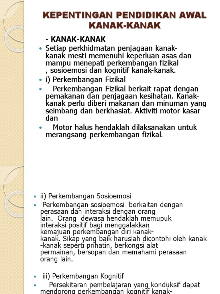Hasrat penubuhan pendidikan Islamawal kanak-kanak adalah penyemaian benih bermutu bagi menjadikan keredaan Allah sebagai puncak pencapaian pendidikan dan destinasi terakhir. A Mempunyai sifat peribadi perwatakan dan konsep kendiri yang positif untuk menjadi. 12 Kepentingan bermain dalam proses pembelajaran untuk kanak kanak.